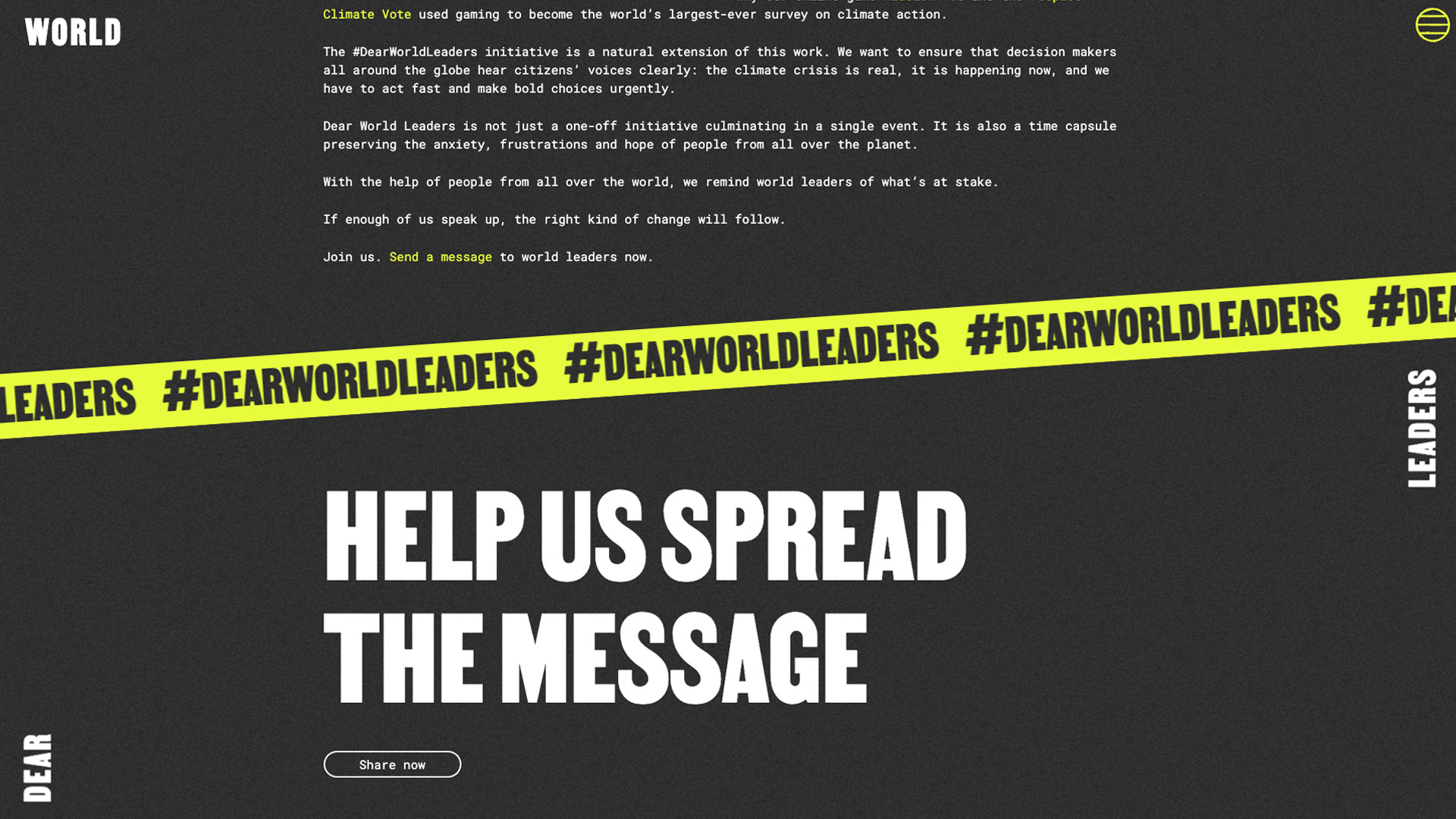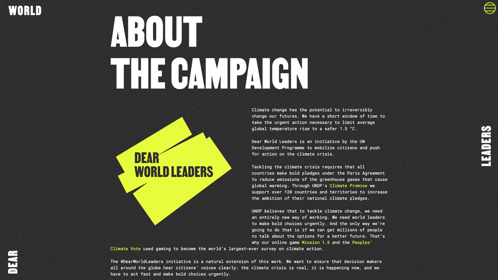 Dear World Leaders is an initiative by the UN Development Programme to raise awareness of the global climate crisis ahead of COP26 in Glasgow - and beyond.