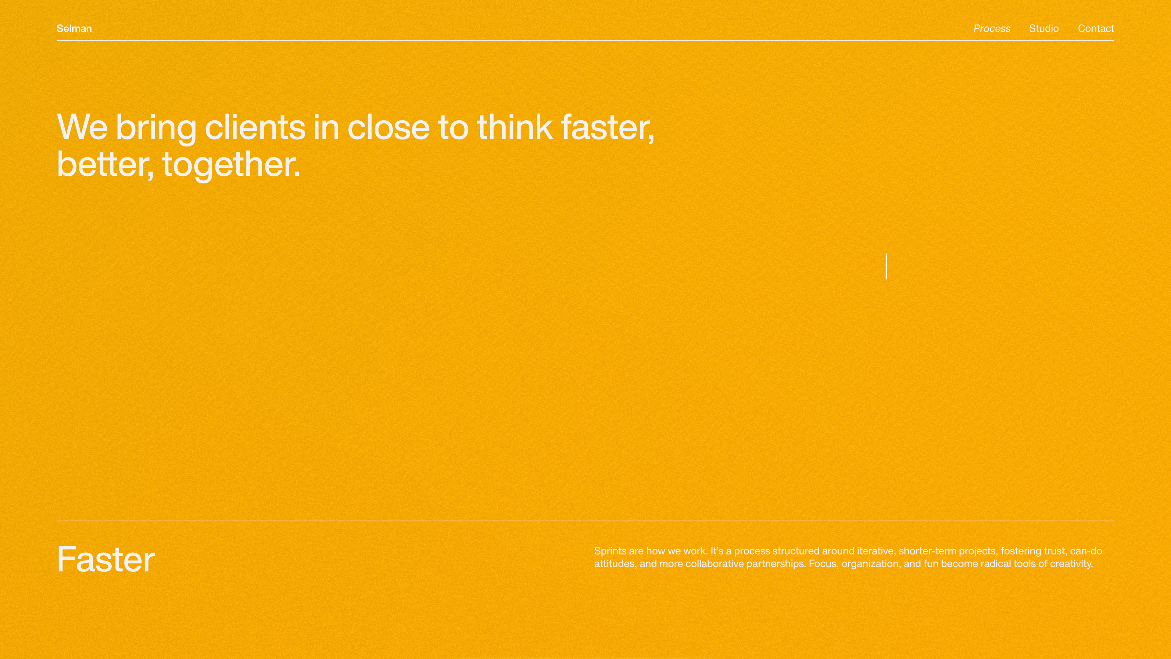When the New York based studio Selman approached us, we were immediately overwhelmed by the quality of their work. We took the high level design and turned it into a lively, intuitive and solid online experience.