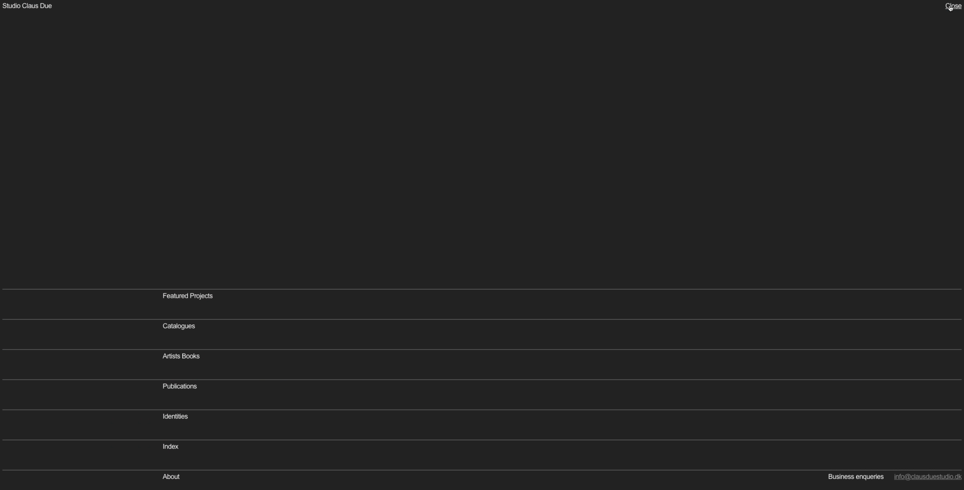 With a back catalogue like Claus Due it's hard to make a website that does it justice, but Norgram and Set Snail managed to capture the essence of it all in a simple one-page layout. With a menu that draws inspiration from a traditional TOC, empowered by a sprinkle of Set Snail animation skills and voila - a website is served.