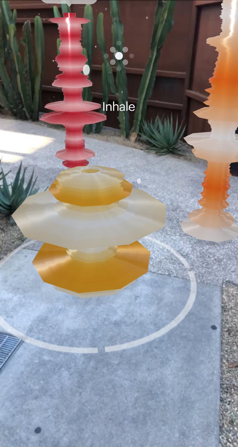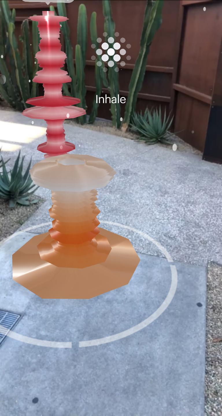 Enjoy a relaxed breathing session with a friend. While becoming familiar with meditative breathing techniques, you generate a library of sculptures that you can always come back to enjoy. Over time your sculptures will become more uniformed, which means you're mastering the breathing exersizes. Breathings utilized the collaborative lens tech made a avaiable in Lens Studio.